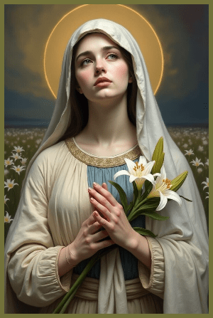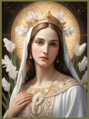 Mary’s profound faith allowed her to trust in divine providence, guiding her through life’s challenges with unwavering conviction. This faith was complemented by her unwavering hope, which instilled in her a deep sense of expectation and optimism for the future, regardless of present circumstances. Her boundless charity manifested in her selfless love for others and extended compassion and support to those in need without hesitation. Her pure chastity reflects an admirable devotion to her values and principles, demonstrating her commitment to a higher calling.