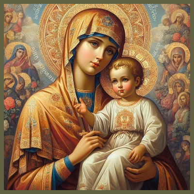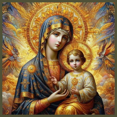 As an impeccable participant in the divine nature, Mary stands distinguished as free from all corruption that arises from the tumult of human desires—an affliction vividly noted in scripture (2 Peter 1:4). Her uniqueness is rooted in the light of the Holy Spirit, who dwells within her, allowing the essence of divinity to radiate through her very soul. This divine presence is beautifully mirrored in her relationship with her Son, Jesus Christ, whose divine attributes are reflected in her being.